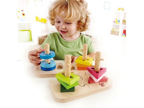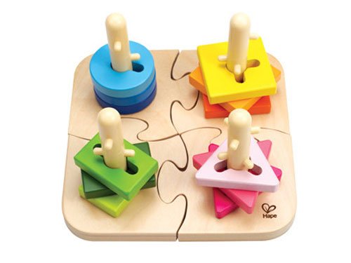 Hape(ハペ)の突起の付いた柱にピースを通す木製パズルです。カラフルなピースの溝と柱の突起を上手にあわせて、木製ピースを通しましょう!ピースを指先で持ち、柱に通すことで、集中力や指先の器用さが養われます。土台は、ジグソーパズルになっています。 【■Hape(ハペ)について】 Hape(ハペ)は、1986年にドイツの幼稚園への玩具サプライヤーとして始まり、創造性のある木製玩具をルーツとしています。 現在は、拠点をスイスに移して、省エネ・再利用・リサイクルを信念に環境に配慮して世界50カ国以上でおもちゃを販売しています。 Hapeのおもちゃは、子供たちの発達を最大に促し、長年使え、世代を超えて受け継いでいけるようにデザインされています。 竹や木、クラシックな物から新しい物まで、子供たちに直観的に受け入れてもらいるようにデザインしています。 『遊び』は文化・言葉・性別によって、制限・定義されるべきではない。グローバルな感性を持っておもちゃを生み出す努力を重ねています。