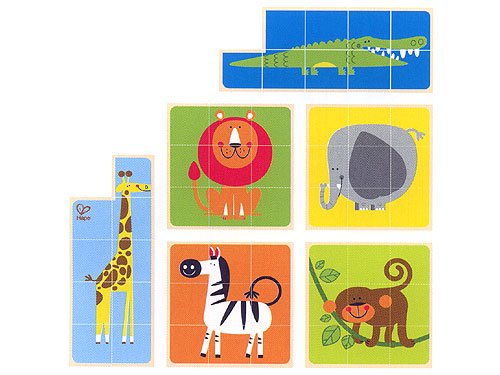 Hape(ハペ)のアニマル ブロックパズルシリーズ。9ピースの6面ブロックパズルです。子供たちのよく知っている6匹の動物園の動物をいろいろな組み合わせから探させます。はじめは、動物の背景の色を参考にして、絵合わせしてみましょう。パズルの完成形はいつも正方形だけではありません。キリンは縦長に、ワニは横長に出来上がります。ブロックパズルを上手に組み合わせて動物の絵が完成できるかな?パズル遊びを楽しみながら、動物の名前も覚えられますね♪ 【■Hape(ハペ)について】 Hape(ハペ)は、1986年にドイツの幼稚園への玩具サプライヤーとして始まり、創造性のある木製玩具をルーツとしています。 現在は、拠点をスイスに移して、省エネ・再利用・リサイクルを信念に環境に配慮して世界50カ国以上でおもちゃを販売しています。 Hapeのおもちゃは、子供たちの発達を最大に促し、長年使え、世代を超えて受け継いでいけるようにデザインされています。 竹や木、クラシックな物から新しい物まで、子供たちに直観的に受け入れてもらいるようにデザインしています。 『遊び』は文化・言葉・性別によって、制限・定義されるべきではない。グローバルな感性を持っておもちゃを生み出す努力を重ねています。
