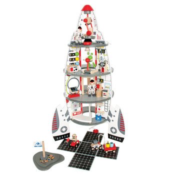 Hape(ハペ)の細部まで作りこまれた木製の4層構造の宇宙船です。制御室や研究室、エクササイズルームなど、実際のスペースシャトルに似て設計されています。各階にはエレベーターで移動できます。ソーラーパネルでエネルギー補充完了!宇宙船が楽しい宇宙の旅へと連れていってくれます。宇宙飛行士やロボット、エイリアンが、さらに冒険をワクワクさせてくれます。想像力をふくらませて遊びましょう!最上部のロケットは、切り離して遊べます。 【■Hape(ハペ)について】 Hape(ハペ)は、1986年にドイツの幼稚園への玩具サプライヤーとして始まり、創造性のある木製玩具をルーツとしています。 現在は、拠点をスイスに移して、省エネ・再利用・リサイクルを信念に環境に配慮して世界50カ国以上でおもちゃを販売しています。 Hapeのおもちゃは、子供たちの発達を最大に促し、長年使え、世代を超えて受け継いでいけるようにデザインされています。 竹や木、クラシックな物から新しい物まで、子供たちに直観的に受け入れてもらいるようにデザインしています。 『遊び』は文化・言葉・性別によって、制限・定義されるべきではない。グローバルな感性を持っておもちゃを生み出す努力を重ねています。