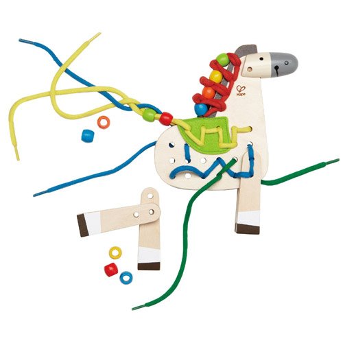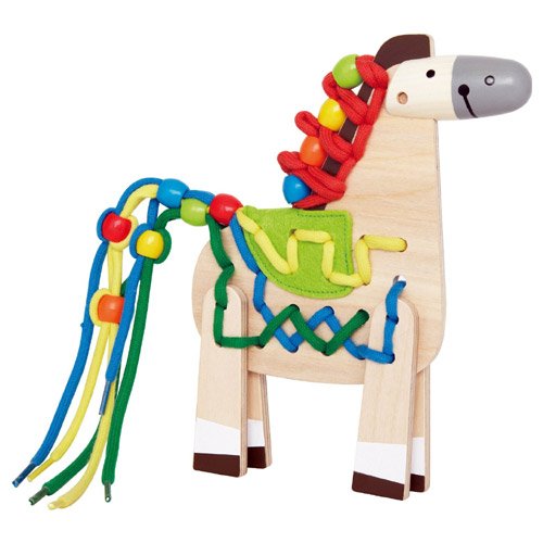 フェルト・ビーズをくっつけて、ポニーを組み立てるHape(ハペ)のひも通しです。 編み方や4色のひもの組み合わせを変えて、ポニーをかわいく飾ることで、ひもの結び方の練習ができます。 ひも通しは楽しく遊びながら、指先・視覚・脳を相互に刺激し、知育の発達を促します。 【■Hape(ハペ)について】 Hape(ハペ)は、1986年にドイツの幼稚園への玩具サプライヤーとして始まり、創造性のある木製玩具をルーツとしています。 現在は、拠点をスイスに移して、省エネ・再利用・リサイクルを信念に環境に配慮して世界50カ国以上でおもちゃを販売しています。 Hapeのおもちゃは、子供たちの発達を最大に促し、長年使え、世代を超えて受け継いでいけるようにデザインされています。 竹や木、クラシックな物から新しい物まで、子供たちに直観的に受け入れてもらいるようにデザインしています。 『遊び』は文化・言葉・性別によって、制限・定義されるべきではない。グローバルな感性を持っておもちゃを生み出す努力を重ねています。
