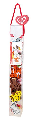 The Farm Animal Qubes from Hape Toys features 12 farm themed wooden animals that are brightly colored, made of high quality wood, and are easy to grip for little hands. Great for color and animal learning as well as great travel toys thanks to their small design. Here a pig, there a cow. Twelve familiar farm animals encourage story-telling and imaginative play. Hape's Farm Animals Qubes set has all the animals little ones need to make a bustling little imaginary farm. Hape's Farm Animals are also great for many other fun exercises. You can ask your little one what noises the Farm Animals make, play counting games, or have them describe the different animals. The twelve-piece set is crafted according to Hape's signature high-quality standards. Farm Animals are made from FSC-certified wood and finished with child-safe paint, so you know they are well made and sustainably-produced. The set also comes in a convenient tote, so it makes a great "Grab and Go" toy. For ages 12 months and up.