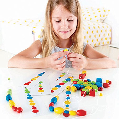 ドイツ、Hape(ハペ)のひも通しで目と手の協応力と目で見た物の理解力を育てる知育玩具です。 ★同じそろえられるかな? ビーズをひもに通していく動作は、注意深く観察し、計画を立てる力を養います。 子供たちは、より長くビーズをひもに通しながら協調能力を高めます。 順序や模様、形に注目することで、重要な数学の能力が向上します。 【ねらい】 ・目と手の協応力を促します。 ・目で見た物の理解力を育てます。 ・考えを組み立てる力を順番にならべる力を伸ばします。
