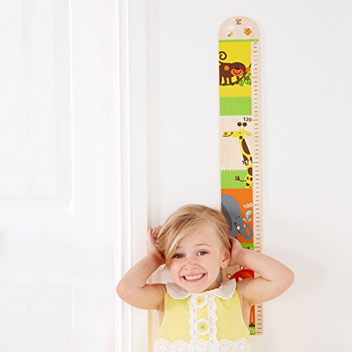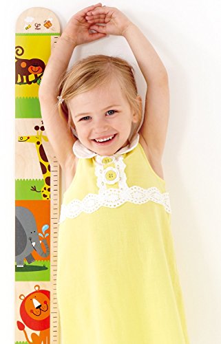 This whimsical wooden growth chart will keep track of your child's progress from small to tall… to taller! Bright cheerful graphics greet you every day and stickers are included to record all your child's growth milestones. Encourage your kids to engage in conversations about how they are growing and learning new things! Hape's toys stimulate children through every stage of development and help nurture and develop their natural abilities. All Hape products sold in North America meet or exceed all applicable safety standards.