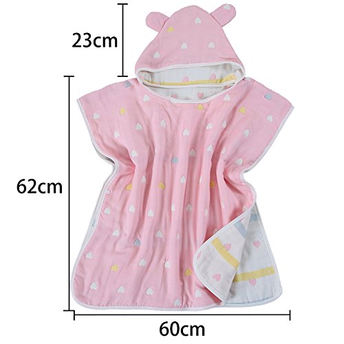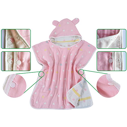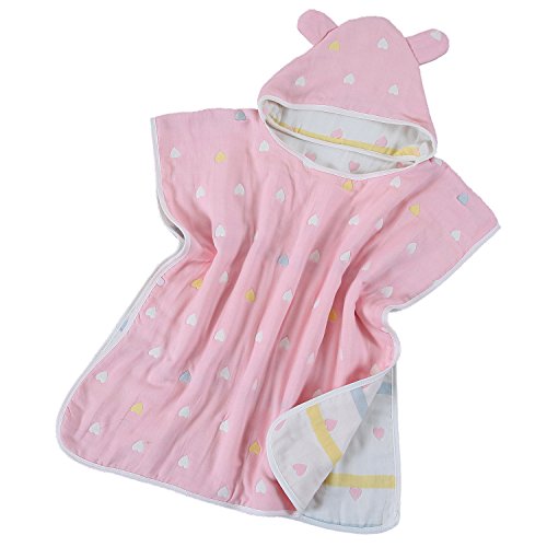 Hapipana 綿100% 6重ガーゼ キッズ 可愛い フード付きバスタオル マント バスローブ ポンチョ おくるみ 寝袋 プールビーチ 冷房 対策 出産お祝い ギフト (女の赤ちゃん)