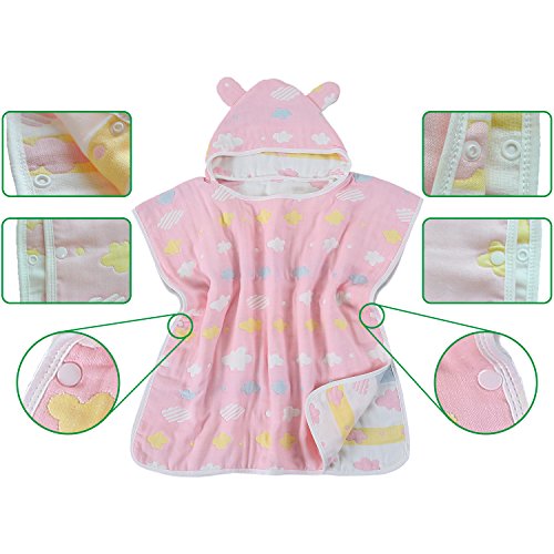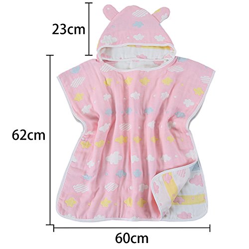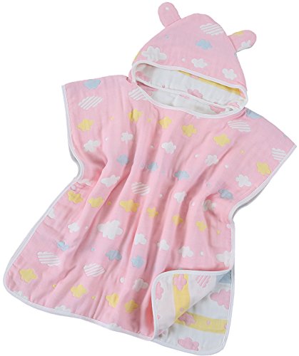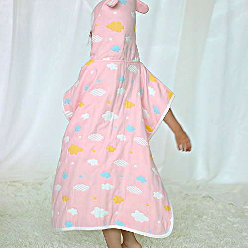 Hapipana 綿100%6重ガーゼキッズ可愛いフード付きバスタオルマントバスローブ寝袋プールビーチ冷房対策出産お祝いギフ (女の赤ちゃん B)