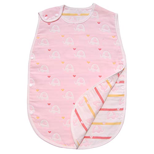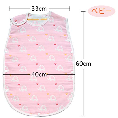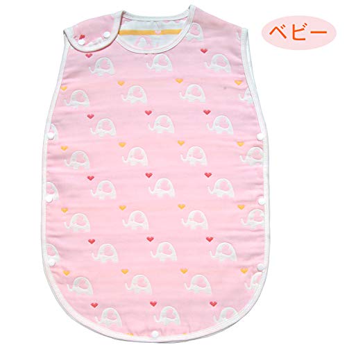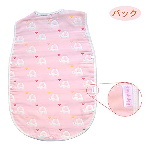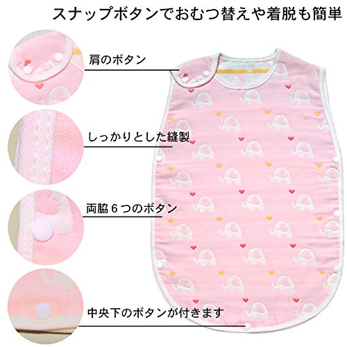 スリーパー 綿100% 6重ガーゼ ベビー キッズ 赤ちゃん コットン 柔らかい 寝冷え防止 男の子 女の子 Hapipana (ピンクの象さん, ベビー)