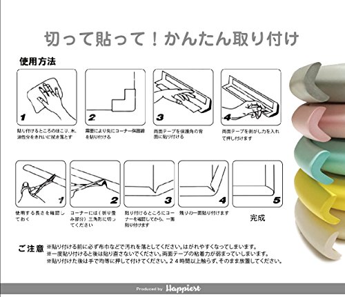 テーブルを始めとする家具の角を保護するL字型のクッション材になります。 小さいお子様やお年寄りが転倒され家具にぶつかった時、クッション材が衝撃を和らげてくれるので 怪我の防止に役立ちます。 特に赤ちゃんは思わぬところで頭をゴツンとしてハラハラ。少しでも衝撃を和らげて守ってあげたいですよね。 パステルカラーの優しい色合いで、インテリアや家具などお部屋の雰囲気に合わせやすい 5色の展開です。 柔らかいので取り回しもよく、はさみで簡単にカット出来ます。説明書と両面テープが付いています。商品サイズ:12mm×35mm×2m
