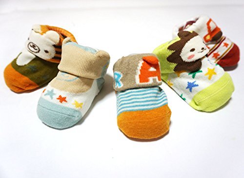 アニマル柄のベビーソックス5足組セットです。 出産祝いの贈り物にもご自宅用にまとめ買いでもオススメです。 5足のお得なセットなので、赤ちゃんにどれを履かせようか楽しみですね! おじいちゃん、おばあちゃんからお孫さんへのプレゼントにもいいですね。 くつ下の裏側にすべり止め付きです。