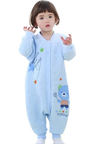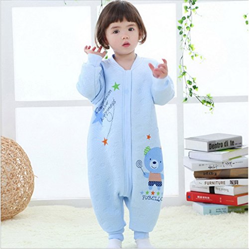 ベビー ロンパース 長袖 カバーオール 可愛い 長袖が取り外す可能 コットン 防寒 寝袋 くまちゃん ブルー 80-90cm