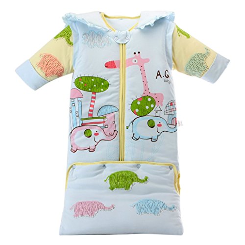 ベビー ロンパース 長袖 カバーオール 可愛い 長袖が取り外す可能 コットン 柔らか 通気性が良い 厚手 保温 象さん ブルー