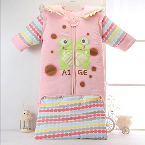 ベビー ロンパース 長袖 カバーオール 可愛い 長袖が取り外す可能 コットン 柔らか 通気性が良い 厚手 保温 カエル ピンク