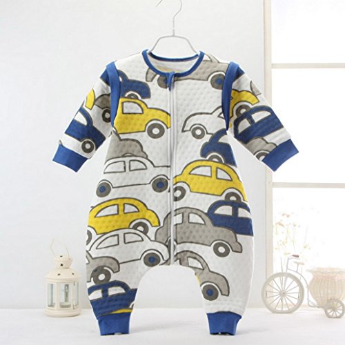 ベビー ロンパース 長袖 カバーオール 可愛い 長袖が取り外す可能 コットン 部屋着 カジュアル 車柄 ブルー 80-90cm
