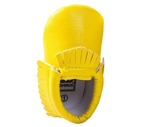 Happy Cherry 超人気 子供 歩行練習靴 赤ちゃんシューズ 新生児靴 ルームシューズ 可愛い 滑り止め 柔らか 出産お祝い 誕生日プレゼント PUシューズ タッセル イエロー サイズ16(13cm)