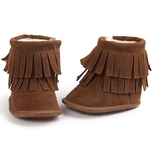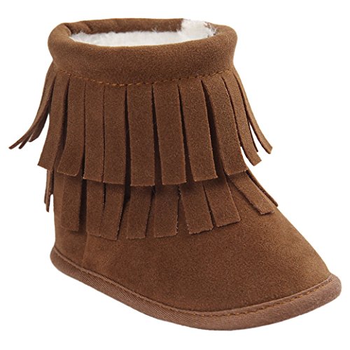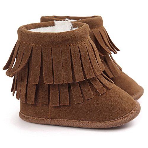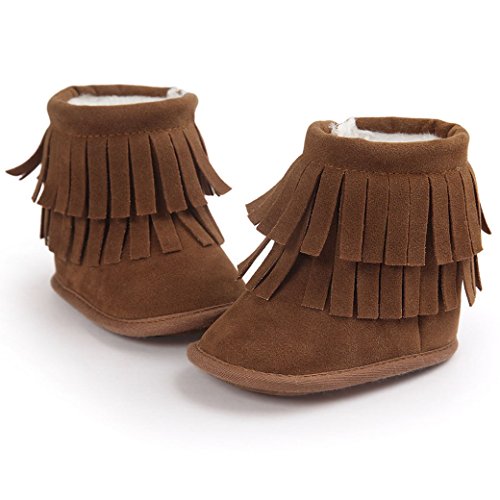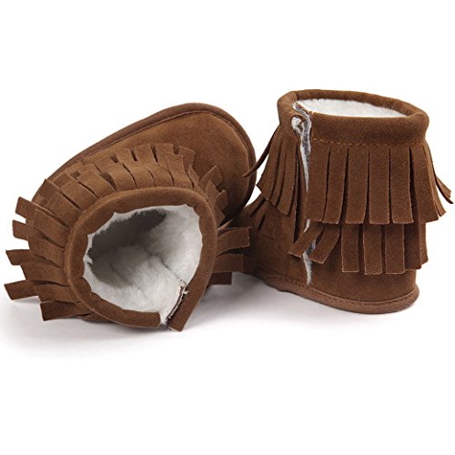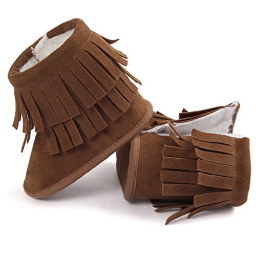 Happy Cherry 新生児靴 ベビー ブーツ 赤ちゃん シューズ ルームシューズ あったか 柔らか 出産祝い 誕生日 プレゼント タッセル ブラウン 13cm