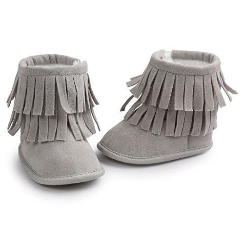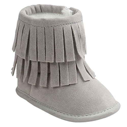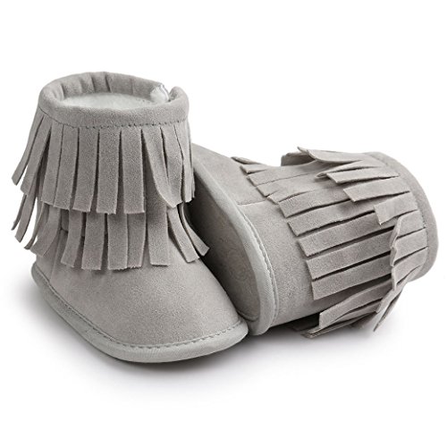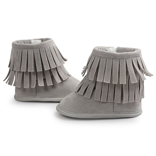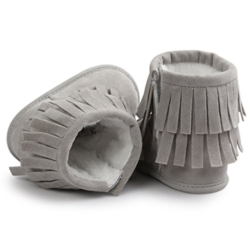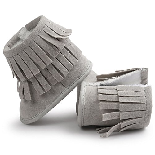 Happy Cherry 新生児靴 ベビー ブーツ 赤ちゃん シューズ ルームシューズ あったか 柔らか 出産祝い 誕生日 プレゼント タッセル ライトグレー 13cm