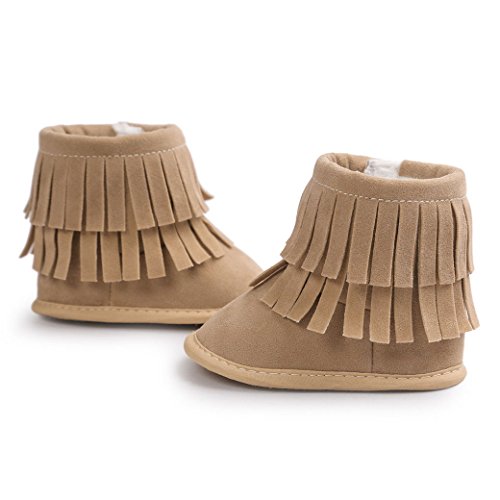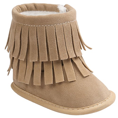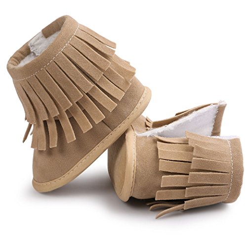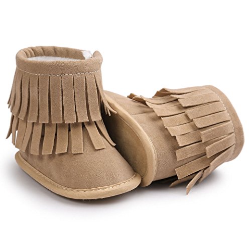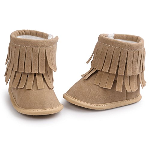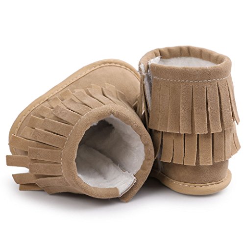 Happy Cherry 赤ちゃん シューズ 新生児靴 ベビー ブーツ ルームシューズ あったか 柔らか 出産祝い 誕生日 プレゼント タッセル カーキ 12cm