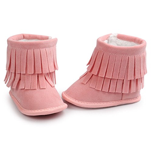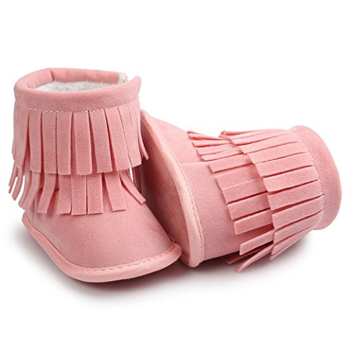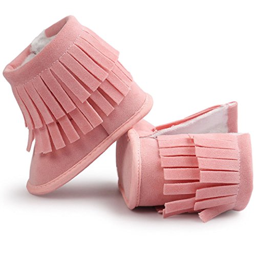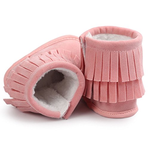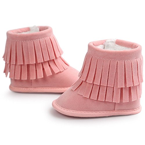 Happy Cherry 新生児靴 ベビー ブーツ 赤ちゃん シューズ ルームシューズ あったか 柔らか 出産祝い 誕生日 プレゼント タッセル ピンク 13cm