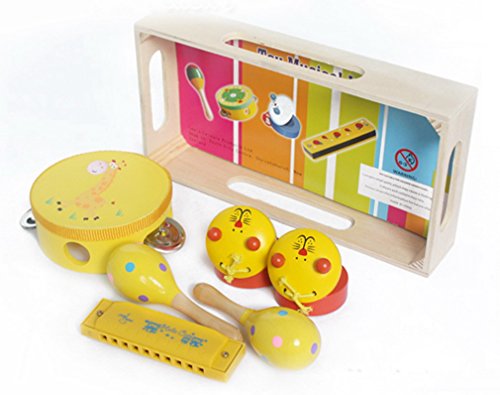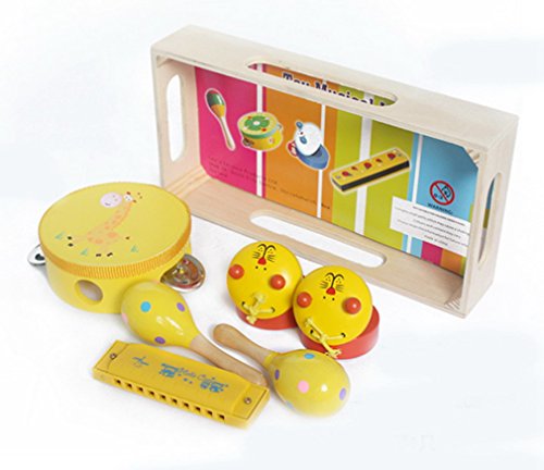 Happy Cherry 6pcs Musical Instrument HandbellリズムドラムRattles Tambourine Maracas Bell Jingle砂ハンマーCastanets Harmonica Set Toys forベビーキッズ幼児用