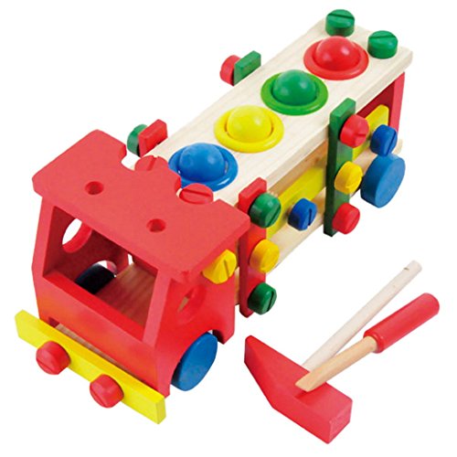 Happy Cherry Kid Educational Wooden Toy Disassembly Screw Nut Vehicle Car Knock Ball