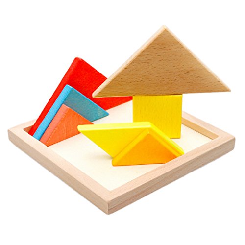 Happy Cherry Kids Children Wooden Educational Geometric Tangram Puzzle Square Toys