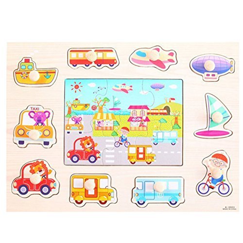 Happy Cherry Kids Children's Wooden Vehical Shape Sorter Puzzle Board Building Block Toy Puzzle Bricks for 3 year old Early Education - Transportation