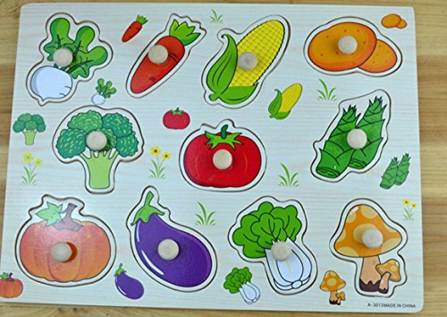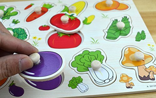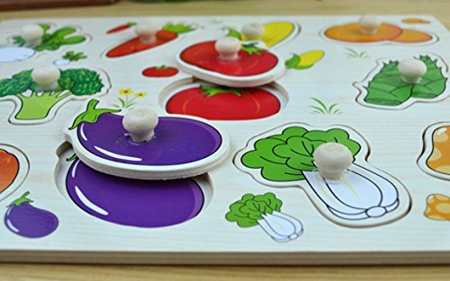 Happy Cherry Kids Children's Wooden Vegetables Shape Sorter Puzzle Board Building Block Toy Puzzle Bricks for 3 year old Early Education