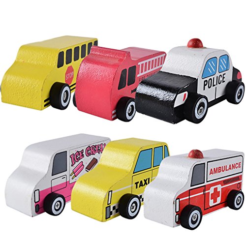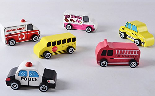 Happy Cherry 木のおもちゃ 可愛い 車モデル 知育玩具 アイスクリームトラック スクールバス タクシー 消防車 救急車 警察車