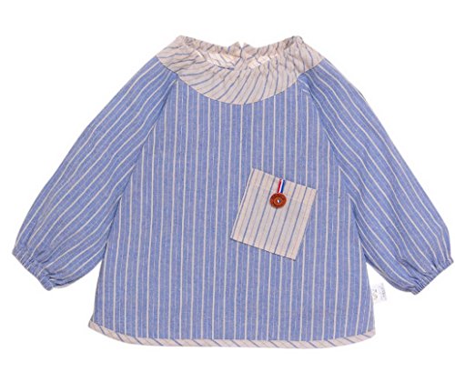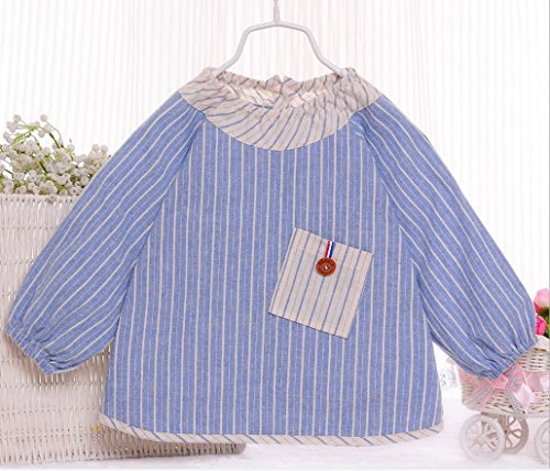 Happy Cherry ベビー 食事用 防水 エプロン 防水 絵画 エプロン 可愛い 防汚 入園 保育園用 オーバーオール 綿 (ブルー、80cm)