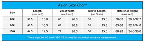 - サイズ:80#: 着丈: 39.5 cm/15.6 inch; バスト:66 cm/26.0 inch; 袖丈:33 cm/13 inch 90#: 着丈:41.5 cm/16.3 inch; バスト:68 cm/26.8 inch; 袖丈:35 cm/13.8 inch 100#: 着丈:44.5 cm/17.5 inch; バスト:72 cm/28.3 inch; 袖丈:38 cm/15 inch