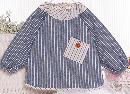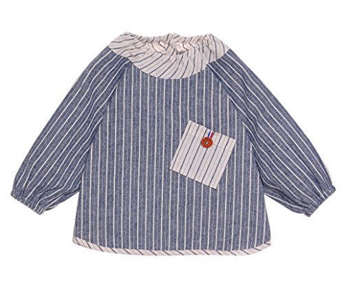 Happy Cherry ベビー 長袖 エプロン 子供 幼児 スモック 食事用 防水 エプロン 防水 絵画 エプロン 入園 保育園用 オーバーオール 綿 (ブルー、80cm)