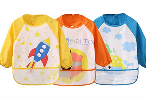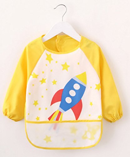 子ども用 エプロン 防水 食事用 お絵かき用 長袖 幼稚園 保育園 3点セットイエロー