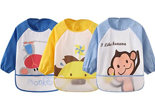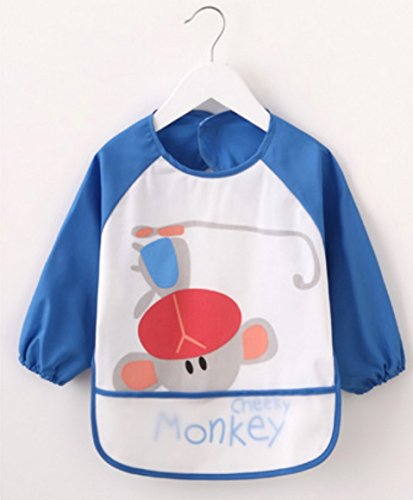 子ども用 エプロン 防水 食事用 お絵かき用 長袖 幼稚園 保育園 3点セット ブルー