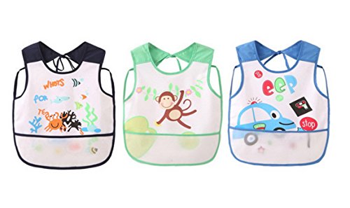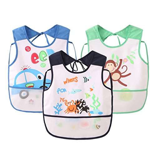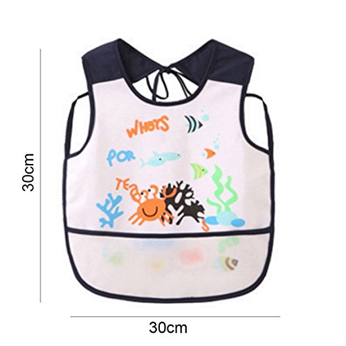 子ども用 エプロン よだれかけ 防水 食事用 お絵かき用 幼稚園 保育園 3点セット ブルー