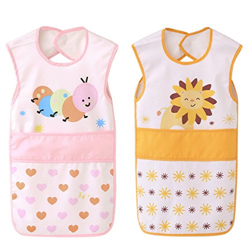 子ども用 エプロン 防水 食事用 お絵かき用 幼稚園 保育園 2点セットイエロー ピンク