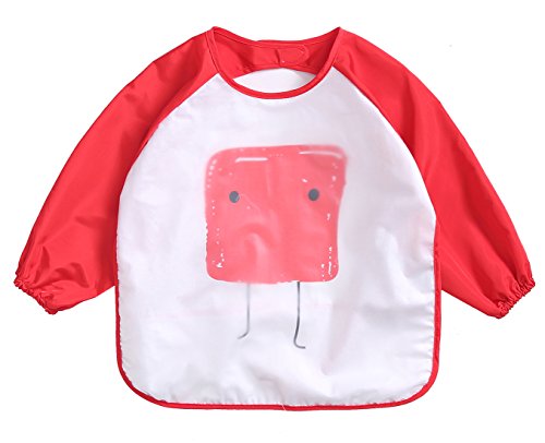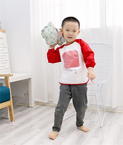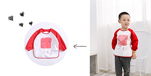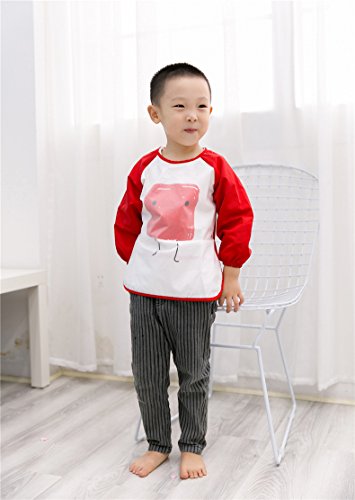 Happy Cherry スモック 幼稚園 エプロン 子供用 ベビー 食事用 長袖 赤ちゃん 防水 防污 ポケット付き お食事練習 絵画用 泥遊び用 かわいい 男女 レッド 対応年齢:1-2歳