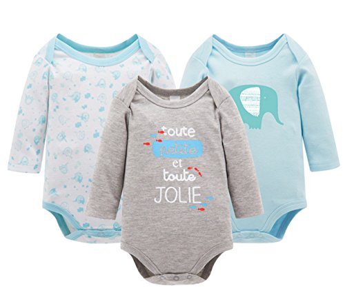 赤ちゃん男の子3パック長袖Onesies Cartoon Elephant PrintばねBodysuits US サイズ: S カラー: ブルー