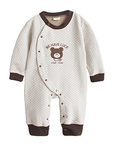 Happy Cherry ロンパース ベビー 子供服 パジャマ 綿 冬 秋 室内 カジュアル リラックス 動物 クマ ホワイト(90)
