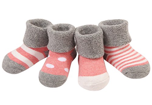 ベビーソックス 4足セット 女の子 綿 冬 防寒 柔らかい 伸縮性いい 可愛い 折り返し お出かけ ルーム用 6~12月 ピンク