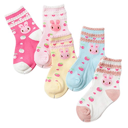 ソックス 女の子 5足セット 幼児 キュート 伸縮性いい 綿 秋 冬 柔らかい コンフォート いちご うさぎ 1~3歳 12-14