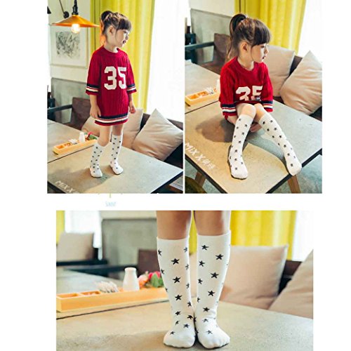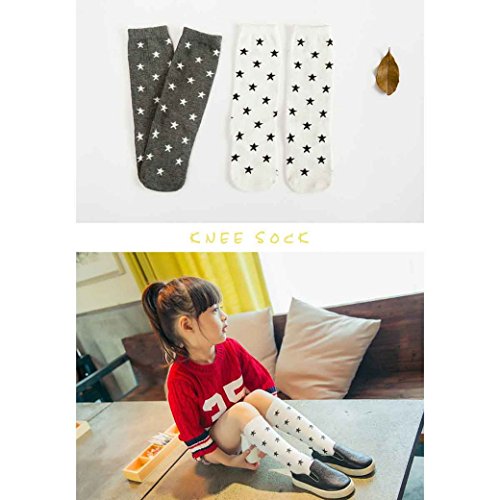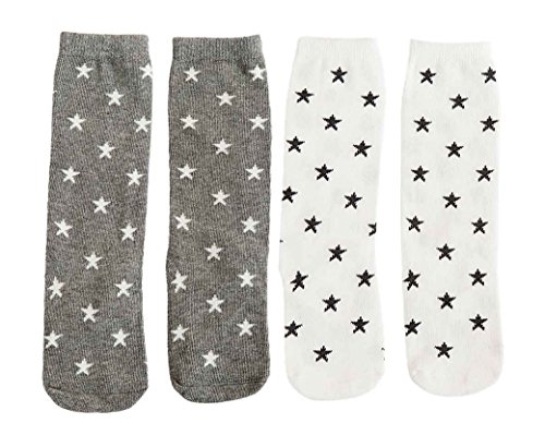 ベビーソックス 子供靴下 可愛い キッズ 綿 ロング丈 秋冬 星 月 男の子 女の子 4ペア(1-3歳)