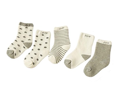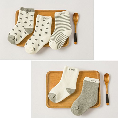 ベビーソックス 子供靴下 綿 厚手 秋冬 可愛い 男の子 女の子 星 月 5ペア グレー (0-1歳)