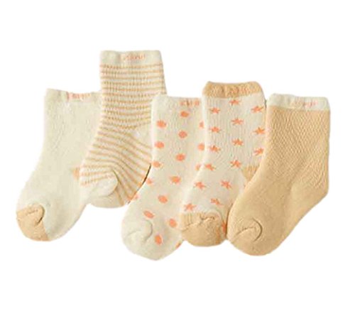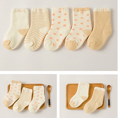 ベビーソックス 子供靴下 綿 厚手 秋冬 可愛い 男の子 女の子 星 月 5ペア カーキ (0-1歳)