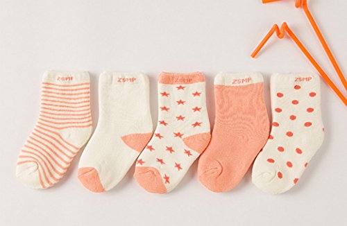 ベビーソックス 子供靴下 綿 厚手 秋冬 可愛い 男の子 女の子 星 月 5ペア オレンジ (1-3歳)