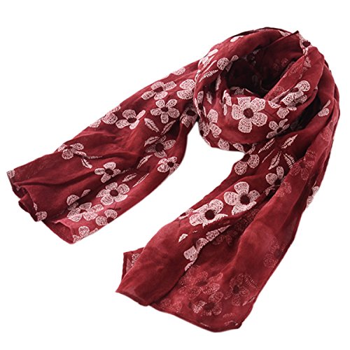 キッズマフラー 子供スカーフ 秋冬 防寒防風対策 男の子 女の子 綿 花柄 ワインレッド 146*40cm