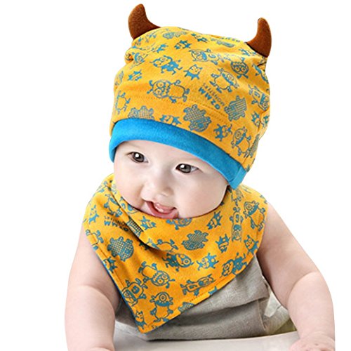 Happy cherry ベビー ビブ 赤ちゃん 帽子 セット キャップ ハット 柔らか 牛の角付き 可愛い 高品質 春 夏 秋 新生児 三角スタイル イエロー