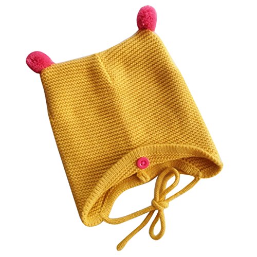 Happy cherry ベビー帽 帽子 ニット 耳付き ボンボン 超かわいい 防寒 着心地抜群 赤ちゃん 新生児 出産お祝い プレゼント イエロー