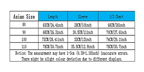 タグに記載されているサイズ、80サイズ(おすすめ年齢5 – 12 monthes ;をおすすめ26.77 – 29.92インチ/ 68 – 76 cm )高さ:長さ24.4インチ/ 63 cm ---袖丈11インチ/ 28 cm ---胸囲26インチ/ 66 cm ;