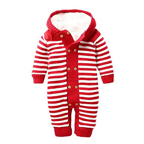 ベビー服 ロンパース 長袖 カバーオール 綿 女の子 可愛い ストライプ 冬 厚手 暖かい お出かけ 男の子 ベビースーツ (74cm、レッド)