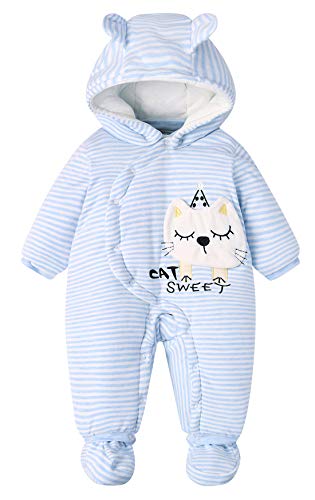 カバーオール 足つき ベビー服 女の子 男の子 新生児 冬服 防寒着 長袖 厚手 前開き 秋冬 出産準備 出産祝い ブルー 73cm