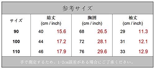 90cm:総丈46cm、胸囲76cm、袖丈33cm、推奨年齢24-36ヶ月